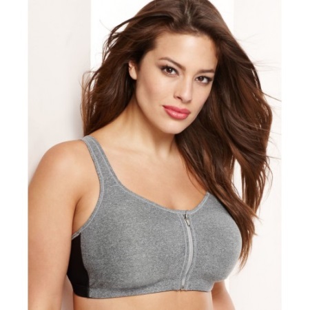 For fitness, take a special bra. They are called sports. Their difference is that they use a special dragging-away fabric, so during the classes the chest will not cause you any inconvenience and will not “run away”. You can safely run, jump and bend. Such bras are available in the form of tops with a cup. At the bottom they have an elastic band and wide straps, which is very convenient.