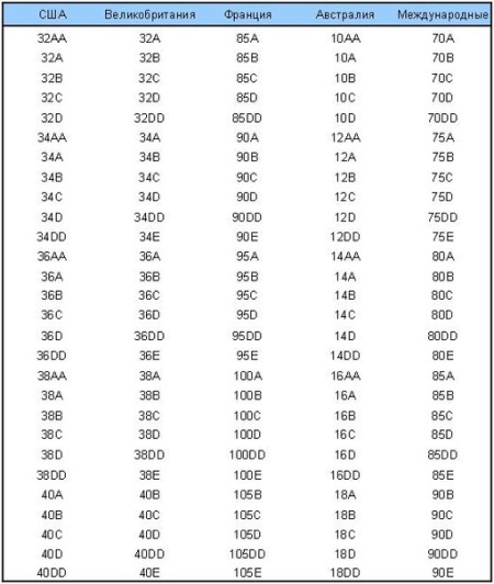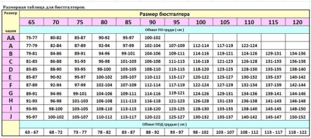 In order to correctly measure your breast size, it is better to contact the seller in the store. You need to know two indicators: the size of the belt and the size of the cup. It is necessary to stand when measuring with hands down. The size chart shows the size of the chest and under the chest up to 120 cm in volume. There is, for example, size 85J. That is the largest bra in the circumference of the chest up to 152 cm.