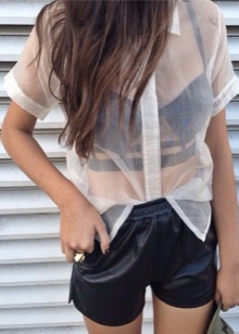 For transparent clothes, simple models of bras are suitable, as jewelry and lace will make the look vulgar. Two-color bras are acceptable, for example, red-black, if the linen matches the shade with trousers or a jacket.