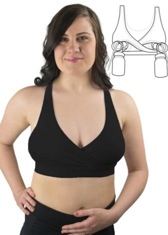 - 2 in 1. This is a bra for pregnant and lactating mothers. Their cut is the same as that of the support, but the cups are fastened to the straps with hooks, thanks to this it is convenient to feed the child and you do not have to pull the straps off each time.