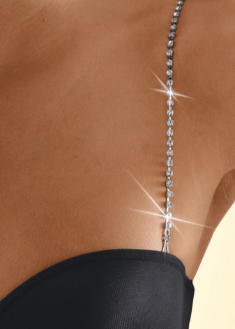 Also a beautiful option is a bra with rhinestones decorated with a strap that horizontally intersects the back. Yes, part of the laundry becomes visible, but it is because of it that the entire outfit takes on a new, stylish look.