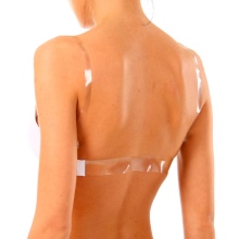 If you want to wear a dress with a deep neckline on the back, a silicone bra can come to the rescue. It consists of two silicone cups connected by a fastener. There are no straps, the corsage is attached directly to the chest thanks to the internal adhesive base.