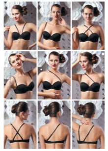 - If you want to wear clothes with bare shoulders and a strap around the neck, then remove one of the strapless suits of the bra outfit, and the second, having previously increased its length, wrap it around the neck and fasten it to the place removed.