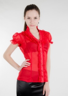 Chiffon translucent burgundy shades, the color of Marsala, blood-red will perfectly harmonize with the bra. Owners of a slender figure are also suitable guipure tight blouses and T-shirts. It is beneficial to emphasize the waist and hips with a pencil skirt and a black wide belt.