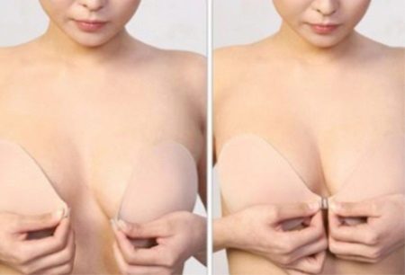 When it comes time to remove this fashionable item of linen, it is important to follow the instructions: first unfasten the clasp, and then carefully unstick each cup from the chest, from the bottom up. This is a painstaking thing, you do not want pain and stretched skin at the décolleté line. It is also worth knowing that you can wear it for no more than 6 hours, otherwise your skin is provided with oxygen starvation, and even with prolonged wear it will just peel off.