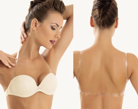 - with a silicone back / back - this addition is suitable for owners of a large bust. The bodice is represented by ordinary fabrics or guipure, but the back and straps are silicone. They don’t make fasteners on the tape of the bra, so you can safely expose your back.