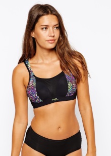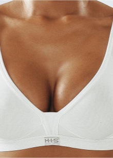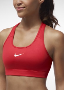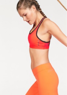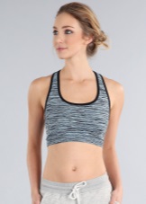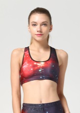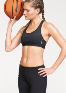 A sports bra often has the appearance of a top with two tabs for additional breast support and minor modeling. As a result, the small bust will be tightly fixed and slightly enlarged.