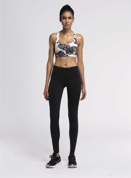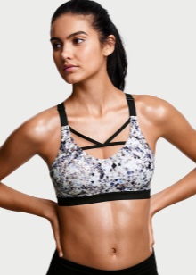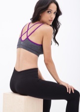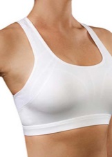 A sports bra looks like a tight-chest-top top with wide straps crossed at the back. Most often, it has a brand of a sporting brand. If you are confused by the appearance of the bodice, you can safely put it on under a sports top or T-shirt. A sports sconce can be replaced with an ordinary bra or silicone cups, but for the sake of comfort during sports, this should not be done.