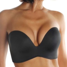 The cups in such a bra are connected by a narrow silicone strip or without it, but very low. Convenient for dresses with a deep neckline. Suitable for girls with neat breasts.