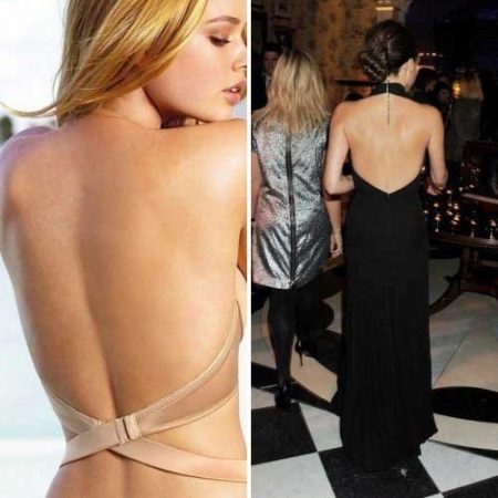 For clothes with an open back, an ideal option would be a bra with “smart” straps that can be moved or moved anywhere, as well as a silicone pad. She will help you out if you decide to wear a transparent or lace dress.