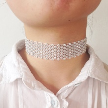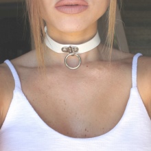 White choker is combined with different clothes. It looks perfect with white things.