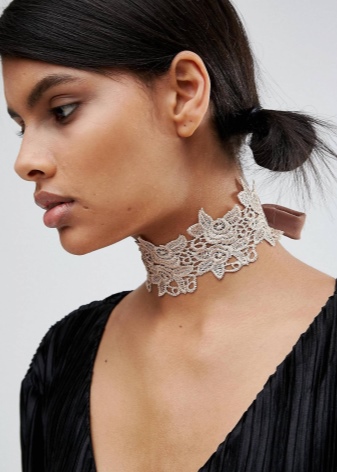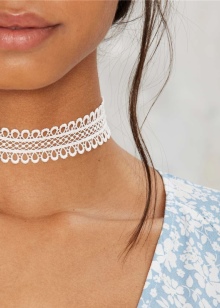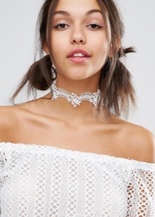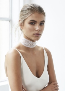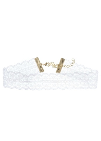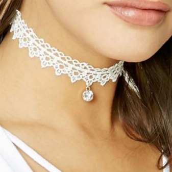 Snow-white accessories are able to bring different shades to the image. A lace choker accents the charming image of a young fashionista and often replaces a wedding necklace. The model can be so airy and tender that it will not yield in refinement to an accessory made of precious metal.