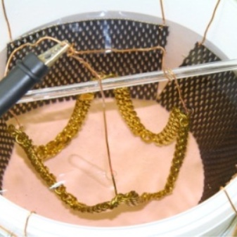 Using this method, the jeweler puts the silver jewelry in a specially prepared liquid-electrolyte, saturated with gold particles. When the product cools down, these very particles seem to stick to it, turning silver into gold. It turns out an interesting coating, which in appearance does not differ from real gold. Jewels made in this way will delight you with a pleasant aesthetic appearance and prices.