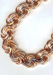 The chain with links in the form of a rose belongs to the cord type of weaving. Docking of rings in several places at once gives the product not only strength, but also the beauty of openwork, lightness, elegance and sophistication. Despite the complexity of care for the accessory, the difficulty of cleaning it from dust and other contaminants, this kind of jewelry is very popular.