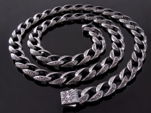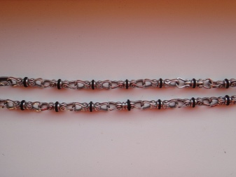 The blackened chain speaks for itself - the composition is distributed in separate sections or along the entire length, due to which the color of the metal changes. Deep black color favorably emphasizes the noble modesty of silver, and often such chains do not need additional decoration;
