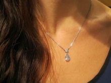 A short chain with a tiny locket or pendant is perfect for a oversize dress or sweater with a deep neckline.