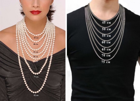 The length of the chain can be any: short models that almost wrap around the neck, and even the longest ones, almost to the navel, also look attractive.