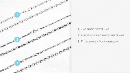 Today you can find more than 75 varieties of jewelry anchor style. Each mounting method has its own name. Below are the main types of weaving chains: