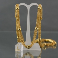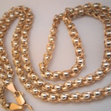 The simplest version of the model is a sequence of gold smooth or faceted pearls. The latter option is striking in its splendor and luxury. Considerably more expensive are the specimens in which round links and cylindrical ones alternate.