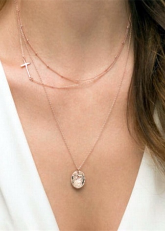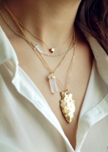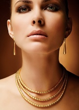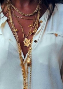 Among the variety of models there are options that reach a length of 100 cm. Such a chain can be worn by dropping it several times on the neck. In its usual form, it will perfectly decorate an evening dress with a large neckline at the back.