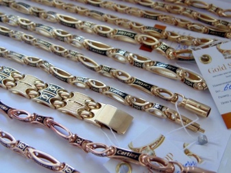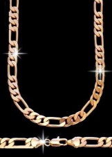 If the financial situation does not allow you to purchase a gold chain, then you should pay attention to the product with gilding. This spraying looks attractive, but in the process of wearing it is erased, so the chain will not last long.