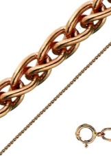 Sample is a very important criterion when choosing a gold chain. She talks about the composition of the alloy from which the jewelry is made. Where is it placed? Typically, the sample is located on the ring to which the lock is attached. The most common option is jewelry made of 585 gold. This material is not soft, and has more than half gold.