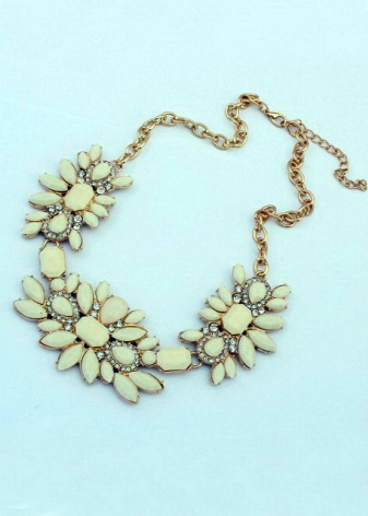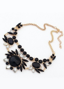 The necklace should be made in a different color scheme compared to clothing.It should be the center of attention. The collar necklace looks harmoniously in tandem with a light dress, looks beautiful against the background of a thin blouse or shirt.
