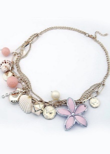 Chains with flowers look feminine and attractive. Flowers are presented in different colors. This decoration is beautifully combined with clothes made of leather or fabric.