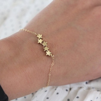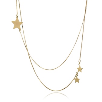 A chain with asterisks looks gentle, elegant and interesting. Elegant stars magnificently emphasize the beauty of their owner. The model with a drop has an elegant look. This jewelry will help to emphasize femininity and tenderness. It is perfect for any style of clothing.