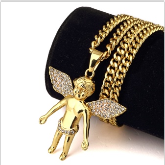 Models with an angel are liked by women who already have their own children. An angel is a symbol of joy and happiness. It acts as a talisman and symbolizes love. One of the original models is a chain with a wheel, which is an unusual decor.