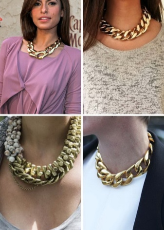No less popular in the new season is a chain in the form of a collar. This original jewelry can be made not only of gold, but also of metal. It must be worn on the neck above the collarbone.