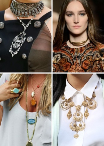 Among branded jewelry, it is worth noting a collar necklace. Large models look very beautiful. They should be combined with plain outfits.