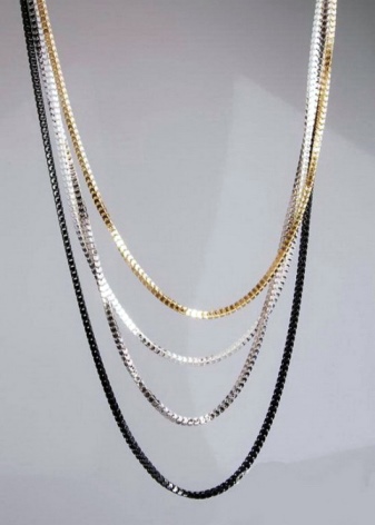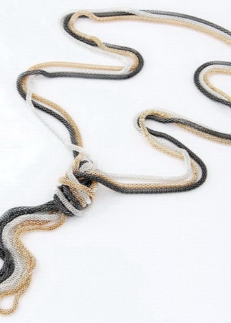 Since the usual chain no longer causes great delight, jewelers offer models of several chains that are located in several levels. Unusually look chains with inserts. The model may have a silver, gold and black chain.