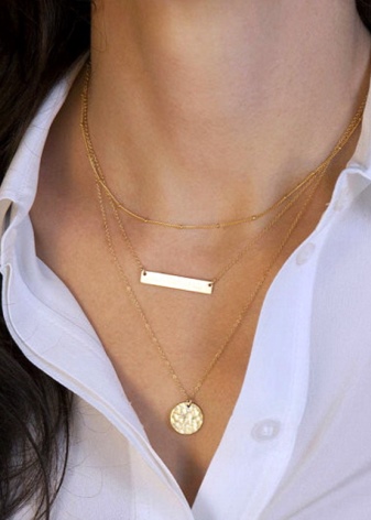 This year’s bestseller was stylish pendants of extraordinary shape. They adorn golden chains, add zest and originality. Pendants in the form of a variety of geometric shapes and weaving are very popular.