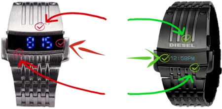 - To distinguish a fake from the original is best on the dial. Real watches have a narrow dial, and the numbers are displayed as a running line without creating gaps.