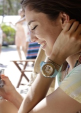 Many girls choose small and thin watches with small cases. They look great on the wrist. But referring to such accessories is recommended only to owners of a fragile physique and thin wrist.