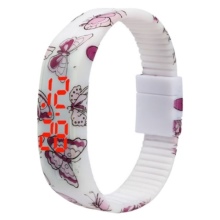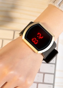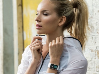 A hit of recent years is bracelet watches. They do not have pronounced cases and displays, and the numbers are displayed on the bracelet itself. The tint of the values in these devices can be different, but the most popular are blue, white, red and bright green colors.