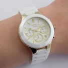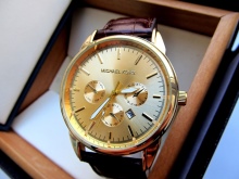 The most popular quartz products are MK5076, MK3179, MK5020. This watch with a PVD-coated steel case is a superhard titanium nitride, over which comes a thin layer of gold or chromium oxide. This coating makes the watch case even stronger. Water protection is different for each model. Minimum - 50RW. She will allow you to calmly swim in the pool and not to remove them before bathing. A number of models also have a chronograph.