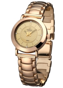 - The use of expensive noble metals and materials. Gold is represented by yellow, white, pink varieties, silver, ceramics. For the design of the case, diamonds, sapphires, cubic zirconias, Swarovski crystals, rhinestone are used. Each watch model is a piece of jewelry.