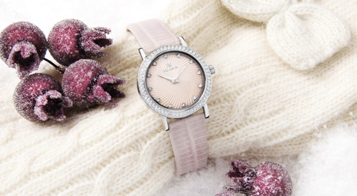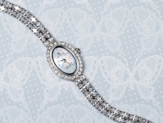 The decor of accessories is varied. The most expensive material is diamonds. More affordable options are inlaid with zircons, topazes, emeralds, cubic zirconias. Stones can be located on the dial and replace the numerical values of time, interspersed in the case around the protective glass.