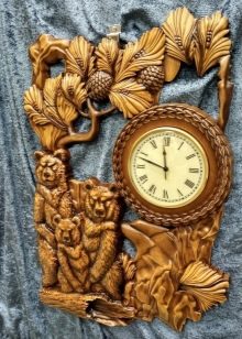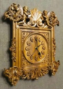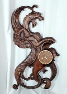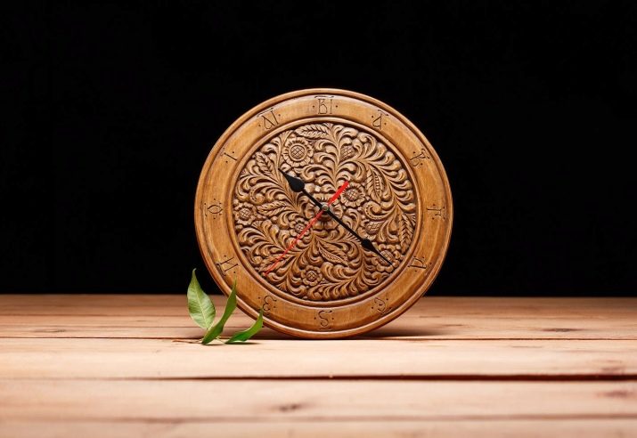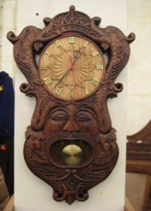 A simple and solid look can be given to the room using carved wooden wall clock. Well, a similar detail of the decor will fit into the living room, especially if it hand-made products. Such mechanisms are a kind of work of art and can cause delight among guests.