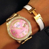They appreciated the fashionistas and the shine of the metals from which the original Rolex models are made. Particularly spectacular on the ladies wrist are items made of pink or white gold.