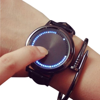 The peculiarity of LED watches is that they display time similarly to mechanical models. LEDs act as familiar dashes. A flashing or lit LED indicates real time.