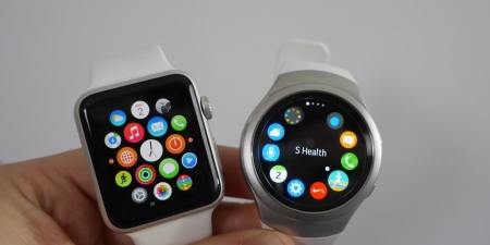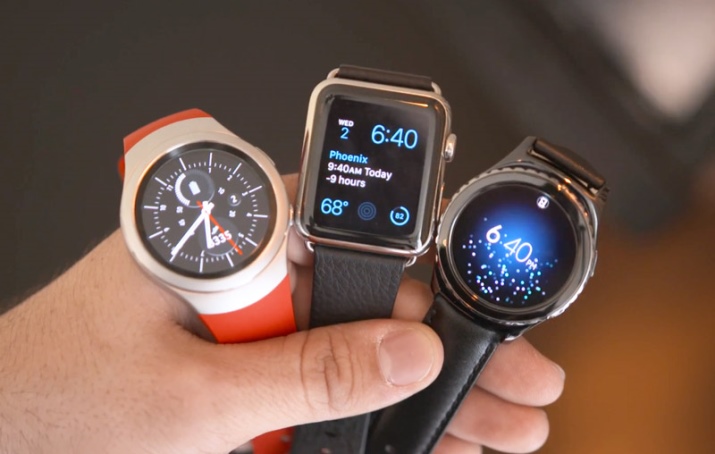 - Another new smartwatch offers Samsung - model Gear S3. The watch has a huge number of functions. The main advantage of the model is that it can work for several days without charging. The bright round-shaped display and the rotary ring, which is designed for ease of navigation, attracts attention. The watch is equipped with a speaker, microphone.