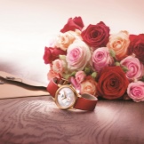 Completely original copies are also produced, for example, the Precious Flower model. The dial is made of mother of pearl and is surrounded by elongated spheres-petals, giving the case a resemblance to a rose bud. A striking feature is the ability of the petals to fold, just like a living flower. The mechanism is held on hand with a satin ribbon, and the case is decorated with a scattering of sapphires, rubies and diamonds.