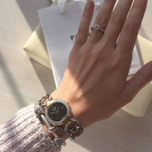 Basically, the modern products of this company are made of high quality stainless steel. There are also titanium and gold models. The introduction of the production of PVD coatings (physical vapor deposition), which consists in the spraying of ions onto a surface in a vacuum, has become innovative. The resulting unusually thin layer is distinguished by its amazing strength and hypoallergenic properties.