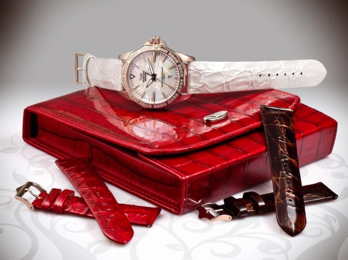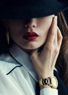 You can complement the modern image of a stylish lady with a wristwatch of bright red, blue, orange, white and burgundy color. They can easily decorate even the most simple and boring images, becoming their bright accents.