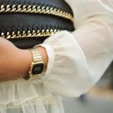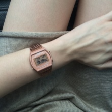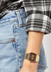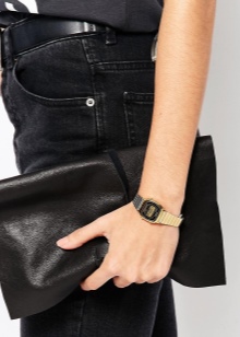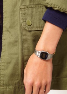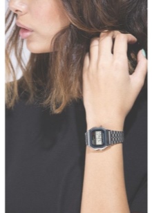 One of the most popular are Casio's durable stainless steel bracelets. This material can be both smooth and with a weaving effect. Ladies are free to choose for their beloved a spectacular option with a matte or iridescent surface in golden, black or silver.
