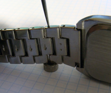 After the pin is pulled out, you can safely remove the extra link. After removing all the necessary links, fasten the pin back - a dull click will notify you of its correct position. Often, jewelers and watchmakers do not recommend the use of an awl or a thin needle, suggesting instead to use an ordinary toothpick, which affects less brittle metal.