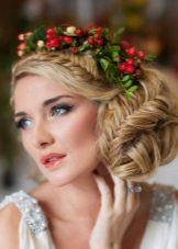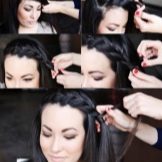 - The second subspecies. It can be divided into two halves and braid from two sides in the manner described above. At the end of weaving, you can combine the hair into a common tail or weave into a common braid, fastened with an elastic band or a crab.